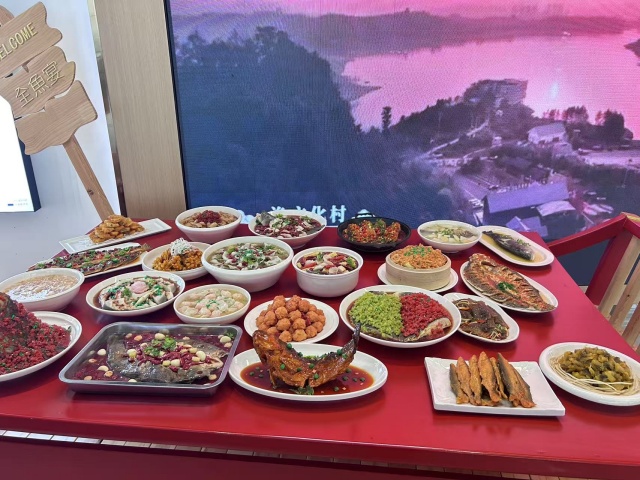 长寿湖花样玩法满足游客玩到尽兴,满足您们舌尖上的需求,吃好玩好喝好,为了更好的广促销,与我们达成合作伙伴给他们量身定制了一桌全鱼晏,让游客们看到摸得着的放心吃,同时也要满足客人胃的需要,用长寿湖的鱼制作的全鱼晏假菜模型,点菜方便快捷,份量十足,